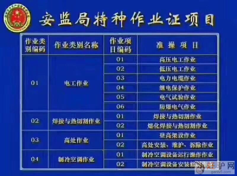 焊工特种作业操作证,即特种作业人员操作证(焊工)接与热切割作业:(准操项目:熔化焊接与热切割作业)工作必须持有的证件,是经过国家安全生产相关培训和注册的证明g.a.n.l.v.5.c.o.m。现由国家安全生产监督管理总局颁发,由各地安全生产监督管理局负责管理赶.驴.网。